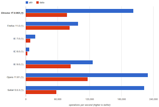 on most browsers, but the speed difference is not important in this question, one advantage of data()